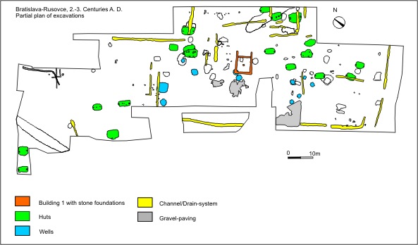 Bratislava-Rusovce, 2.-3. centuries A. D. Partial plan of excavations.